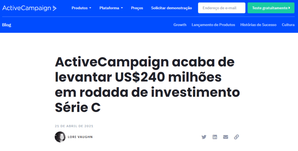 A resposta é um sonoro NÃO, veja: O Active Campaign, uma das principais plataformas de automação de marketing por e-mail, recebeu um aporte financeiro de 240 milhões de dólares.